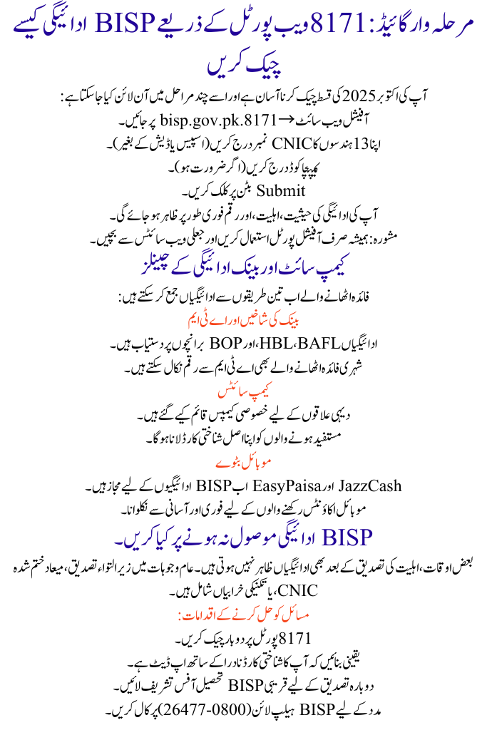 The 8171 Web Portal October Update 2025 has transported major developments in the method BISP payments are dispersed. The cluster system ensures that every district has a clear sum channel, while the web portal lets beneficiaries to check their payment status online without degenerative time.
