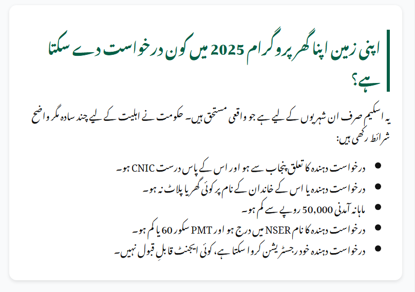Who Can Apply for the Apni Zameen Apna Ghar Program 2025?