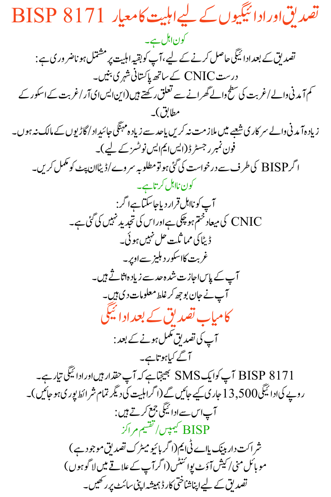 Eligibility Criteria for BISP 8171 Verification & Payments