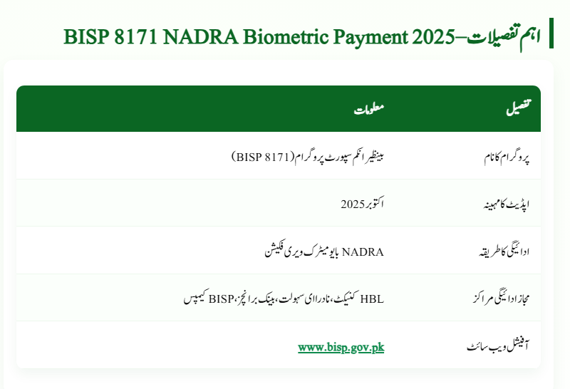 The BISP 8171 NADRA Biometric Payment System (October 2025) has made it easier and safer for millions of Pakistanis to receive their financial assistance.