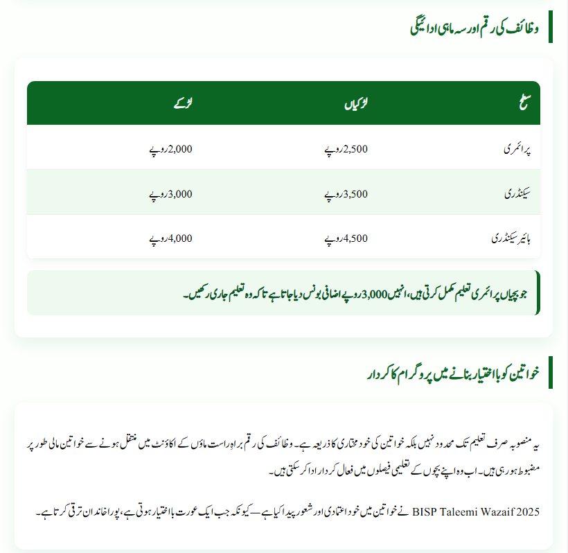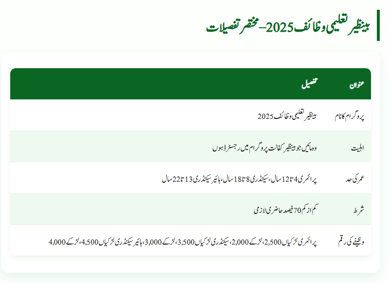 | Program Name | Benazir Taleemi Wazaif 2025 |