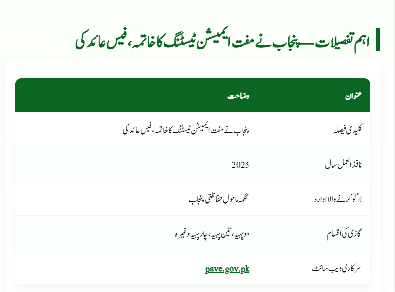 The Punjab Vehicle Emission Testing Fees 2025 policy marks a new chapter in the province’s environmental journey. Though it ends the era of free testing, it introduces a more structured, sustainable, and transparent system.