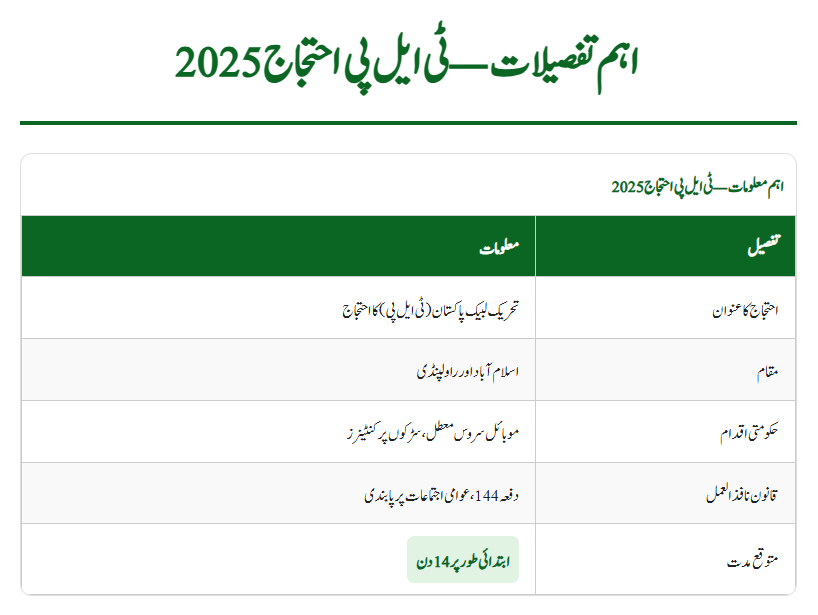 | Protest Title | Tehreek-e-Labbaik Pakistan (TLP) Protest |
