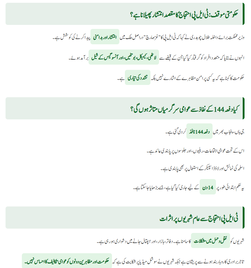 Government Measures to Manage the TLP Protest