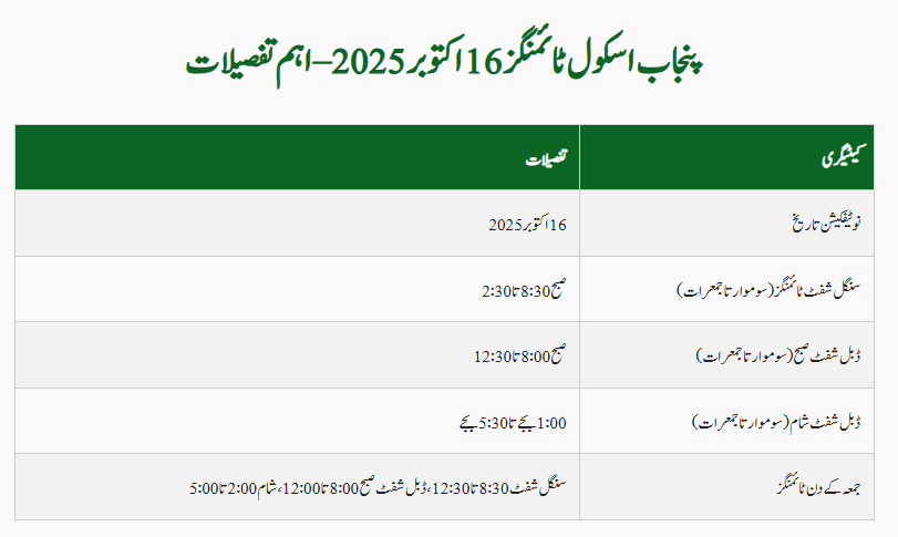 Most schools in Punjab run on a single shift system, meaning that students attend only one session per day. According to the new official schedule: